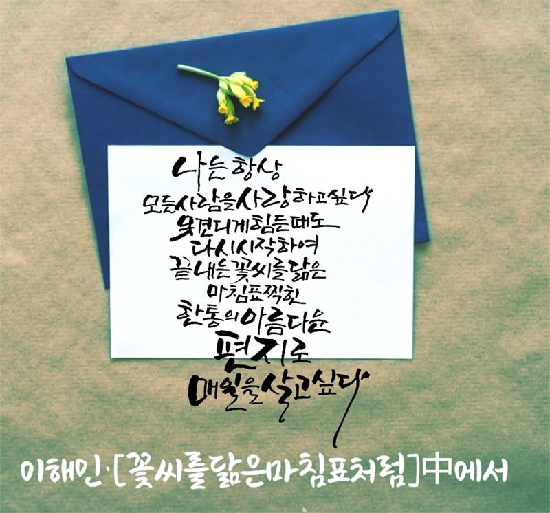 이해인 저 / 열림원 출판 ·시인이자 수도자로서의 삶을 살며 시를 통해 끊임없이 사랑을 전하는 이해인 수녀님!!! '사랑하려고 노력하는 모든 순간이 곧 행복한 봄'이라 말하는 저자는 우리에게 봄처럼 따스한 사랑의 향기를 전해준다^_^ '서로사랑하면 언제라도 봄'의 시집에 실린 '꽃씨를 닮은 마침표처럼 '을 소개합니다! jo은글_캘리 jo은글_캘리 5 0 bookology 장정옥 julia690202@naver.com 장정옥의 기사 더보기 저작권자 ⓒ bookology, 무단 전재 및 재배포 금지