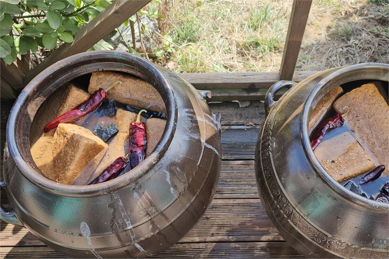 - 오늘 오전 된장 담그기를 했다. ‘콩으로 메주를 쑨’ 것은 아니고, 항아리를 깨끗이 씻어 꿀을 숯에 태워 장독을 소독하고, 메주를 소금물에 담궜다. 숯과 마른 붉은 고추와 대추도 넣었다. 무슨 과정인가?